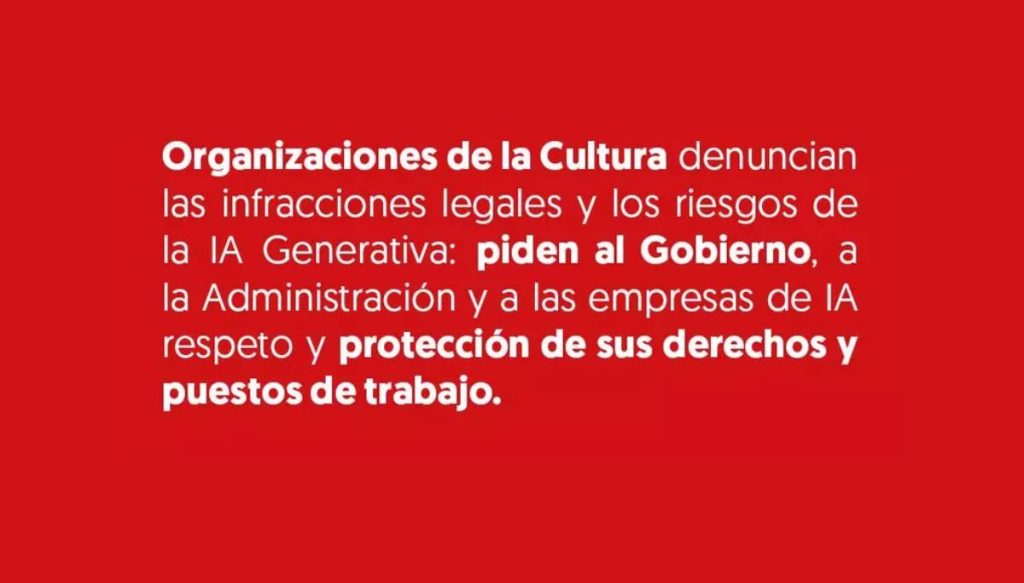 Ante la entrada en vigor del Reglamento Europeo de Inteligencia Artificial y su progresiva aplicación en fases en los Estados miembros, las organizaciones firmantes apelan al Gobierno para que se aprueben las medidas legislativas y administrativas necesarias que minimicen los riesgos y protejan los derechos y los puestos de trabajo de los y las profesionales del sector artístico y cultural.